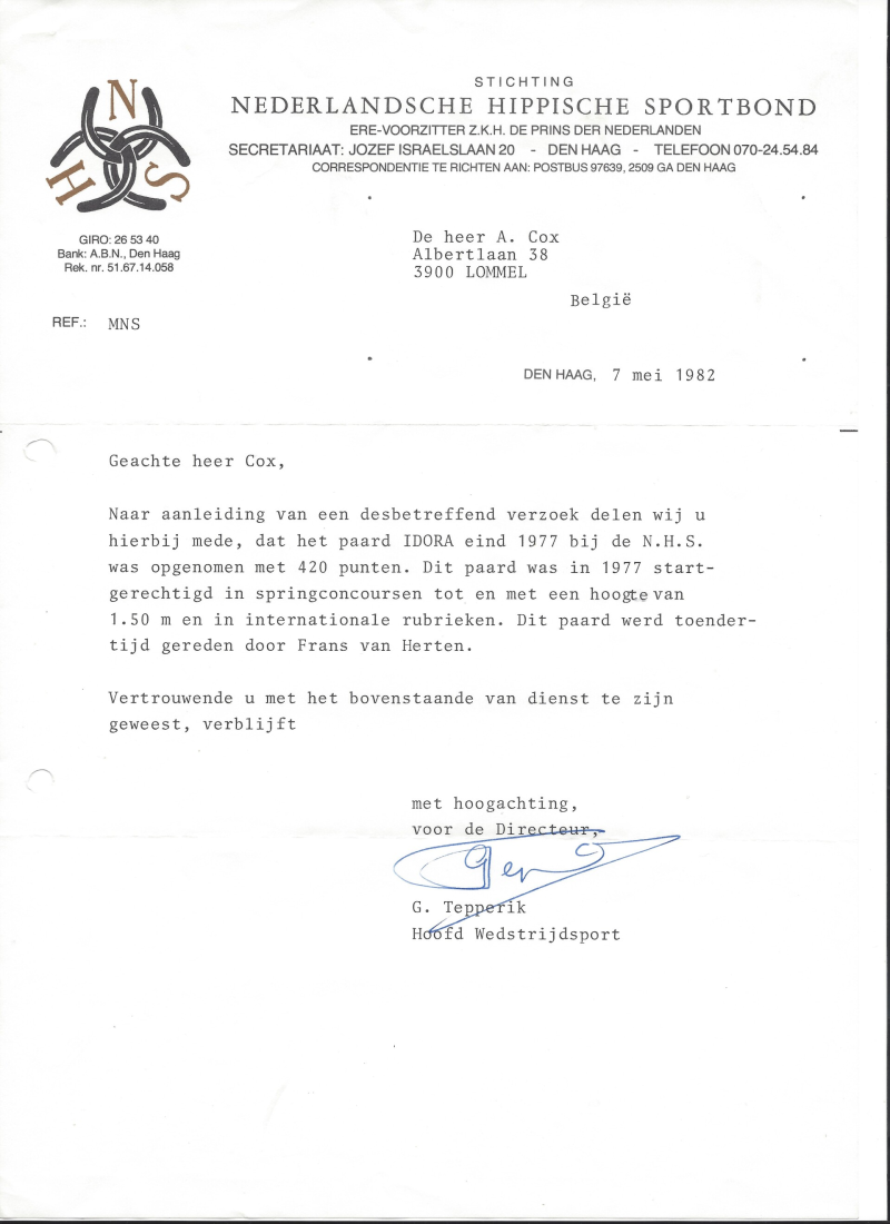 Idora sprong indertijd internationaal succesvol op top niveau, ondermeer onder Frans van Herten en Sven Harmssen.